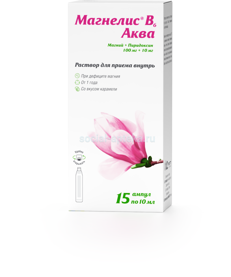 Магнелис В6 Аква р-р д/вн прим 100мг+10мг амп N15 (Фармстандарт-Уфавита)