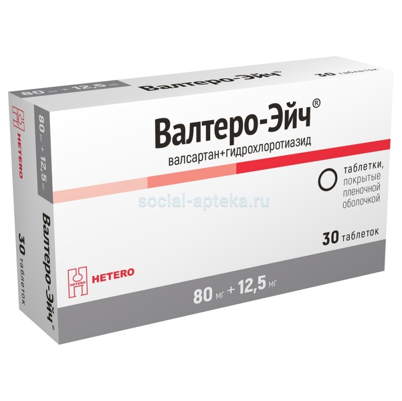 Валтеро-Эйч таб п/пл/о 80мг+12,5мг N30 (Макиз-Фарма)
