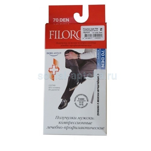 Описание и свойства модели: мужские гольфы Terapia рекомендованы для ношения при варикозе, тромбозе. Несмотря на второй класс компрессии одеваются легко. Особенность в продуманности каждого сантиметра. Применена разная вязка: мелкий рубчик по щиколотке, на пяточной части и икре мелкая сеточка для правильного кровотока, вывязана полная стопа с пяткой. Модель очень комфортная, стильная и износостойкая. Размер 2 практически подойдет на любую длину стопы благодаря высокой эластичности. Противоварикозные гольфы Filorosso сочетают в себе одновременно лечебно-профилактический эффект и красивый эстетичный вид. Ваши ножки будут легкими, походка свободной! Действие: распределенное давление 23-32 мм.рт.ст. плавно переходящее от усиленного в щиколотке с последующим уменьшением от широкой к подколенной части голени.