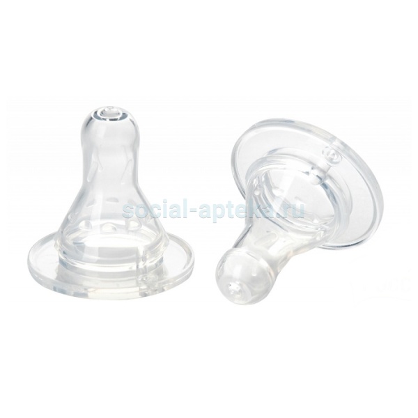 Соски стандартного размера выполнены из мягчайшего гибкого силикона - прочного гипоаллергенного материала, который не вступает в химическую реакцию со слюной, хорошо стерилизуется, не теряет форму и не впитывает запахи. Соски изготовлены в классической форме, напоминающей материнскую грудь, благодаря чему успешно моделируют для ребенка процесс сосания. Отверстие обеспечивает быстрый поток. Соски оптимальны для густого питания: каш, соков, кисломолочных продуктов.