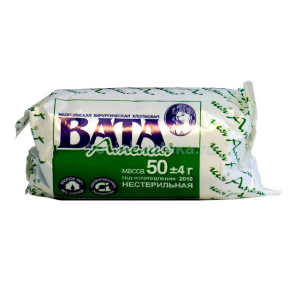 • Вата медицинская хирургическая нестерильная-используется в медицинских и гигиенических целях, производится из натурального длинноволокнистого сырья (волокна 100% хлопка высшей пробы) без добавления добавок и примесей.Вата хирургическая имеет высокую степень прочеса - что обеспечивает отсутствие сорных примесей и включений, по своей структуре легко распределяется на параллельные слои. Обладает высокой сорбционной способностью (эффективно впитывает и удерживает влагу). Вата медицинская хирургическая имеет идеально белый цвет и не содержит посторонних запахов. Отбеливание ваты производится в соответствии требованиям ГОСТа 5556-81 (без использования хлора и его компонентов).