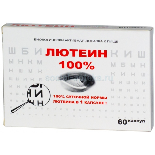 Биологически активная добавка к пище. Не является лекарством.В 1 капсуле содержится 100% суточной нормы лютеина (5 мг).Лютеин - биологически активный жирорастворимый пигмент, входящий в группу каротиноидов - природных соединений, играющих важную роль в обмене веществ человеческого организма.еняться не только для профилактики, но и как помощь в лечении глазных заболеваний.