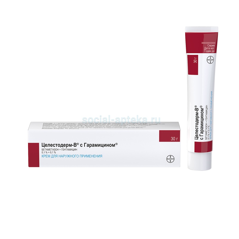 Фармгруппа: антибиотик-аминогликозид+глюкокортикостероид.Фармдействие: Целестодерм-В с гарамицином - комбинированный препарат, действие которого обусловлено компонентами, входящими в его состав. Бетаметазона валерат - ГКС – оказывает противовоспалительное и противоаллергическое действие, тормозит высвобождение цитокинов и медиаторов воспаления, уменьшает метаболизм арахидоновой кислоты, индуцирует образование липокортинов, обладающих противоотечной активностью, снижает проницаемость сосудов. Гентамицин - антибиотик широкого спектра действия - при местном применении эффективен в отношении большинства распространенных возбудителей. В число восприимчивых к гентамицину бактерии входят чувствительные штаммы стрептококка (бета-гемолитический, альфа-гемолитический), золотистый стафилококк (коагулазопозитивный, коагулазонегативный и некоторые пенициллиназо-продуцирующие штаммы), а также грамотрицательные бактерии: Pseudomonas aeruginosa, Aerobaсter aerogenes, Escherichia coli, Proteus vulgaris и Klebsiella pneumoniae.