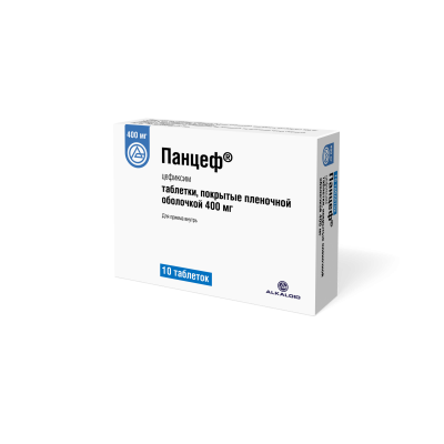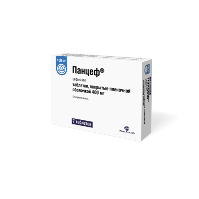 Панцеф - антибактериальное широкого спектра (бактерицидное).ФармакодинамикаЦефиксим представляет собой цефалоспориновый антибиотик III поколения для приема внутрь с выраженной антибактериальной активностью против большинства грамположительных и грамотрицательных микроорганизмов.Механизм действия обусловлен угнетением синтеза клеточной мембраны возбудителя. Устойчив к бета-лактамазам как грамположительных, так и грамотрицательных микроорганизмов.Высокоактивен в отношении Streptococcus pneumoniae, Streptococcus pyogenes, Streptococcus agalactiae, Haemophilus influenzae, Haemophilus parainfluenzae, Moraxella catarrhalis (в т.ч. штаммы, продуцирующие бета-лактамазы), Escherichia coli, Proteus mirabilis, Proteus vulgaris, Neisseria gonorrhoeae, Klebsiella pneumoniae, Klebsiella oxytoca, Pasteurella multocida, Providencia spp., Salmonella spp., Shigella spp., Citrobacter spp. (в т.ч. Citrobacter diversus), Serratia marcescens.Pseudomonas spp., Acinetobacter spp, некоторые штаммы Streptococcus, Enterococcus spp.(метициллиноустойчивые штаммы), Listeria monocytogenes, Bacteroides fragilis, большинство штаммов Staphylococcus, Enterobacter и Clostridium устойчивы к цефиксиму.ФармакокинетикаВсасывание. После приема внутрь всасывание цефиксима составляет 40–50% независимо от приема пищи; однако отмечено, что Cmax в сыворотке крови достигаются быстрее на 0,8 ч при приеме препарата вместе с пищей. При приеме препарата в форме таблеток в дозе 400 мг Cmax в плазме составляет 3,5 мкг/мл. Tmax — 2–6 ч.После приема суспензии Cmax (по сравнению с таблетками) выше на 25–50%. Tmax — 2–6 ч для суспензии 400 мг/5 мл и 2–5 ч для суспензии 200 мг/5 мл. Tmax в плазме крови также составляют 2–6 ч.Распределение. Связывание с белками плазмы составляет 50–60%. Vd составляет 0,6–1,1 л/кг. Высокие концентрации препарата длительно сохраняются в сыворотке крови, желчи, моче.Метаболизм. Нет данных о метаболитах цефиксима.Выведение. Цефиксим выводится в основном почками путем гломерулярной фильтрации в неизмененном виде — 50%, с желчью — 10%.T1/2 у здоровых добровольцев составляет в среднем 3–4 ч, в отдельных случаях — до 9 ч. Продолжительный T1/2 делает возможным однократное дозирование.При нарушении функции почек при Cl креатинина 20–40 мл/мин T1/2 увеличивается и в среднем составляет 6,4 ч, при Cl креатинина 5–20 мл/мин T1/2 — 11,5 ч.